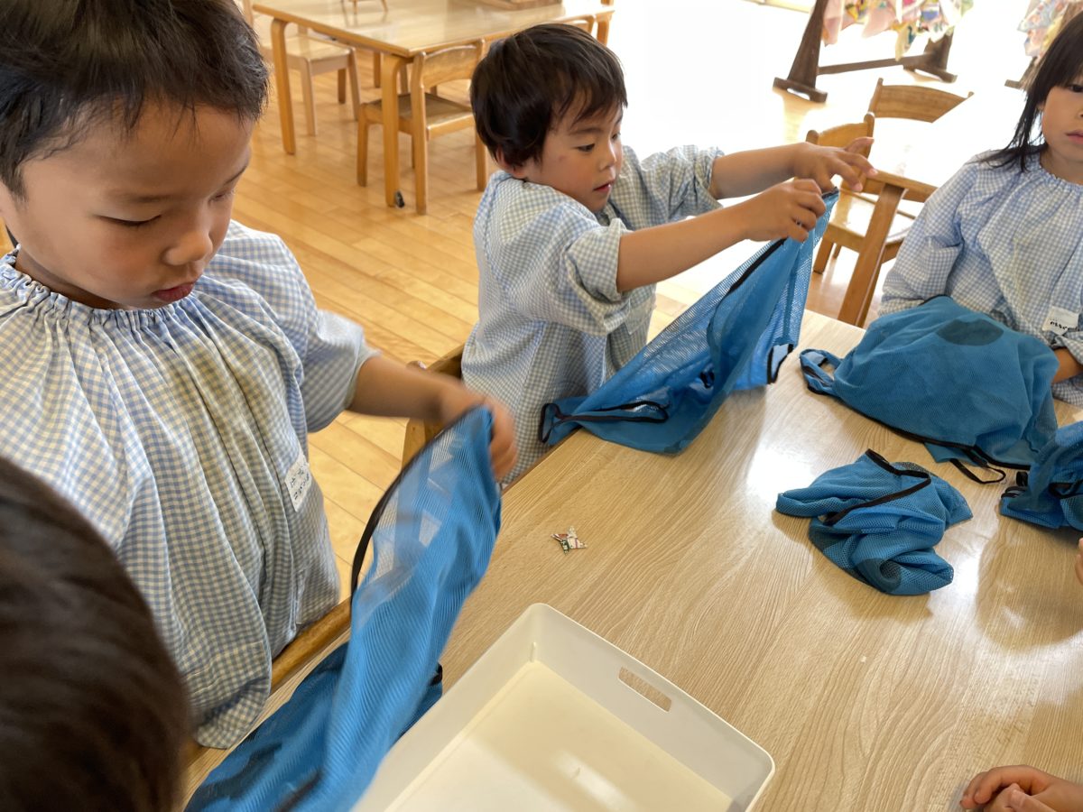 「ビブスをたたむときは、じゅんばんにたたもう!」と声をかけてめろん組さんを中心にみんなできれいに畳むことを心がけていました。