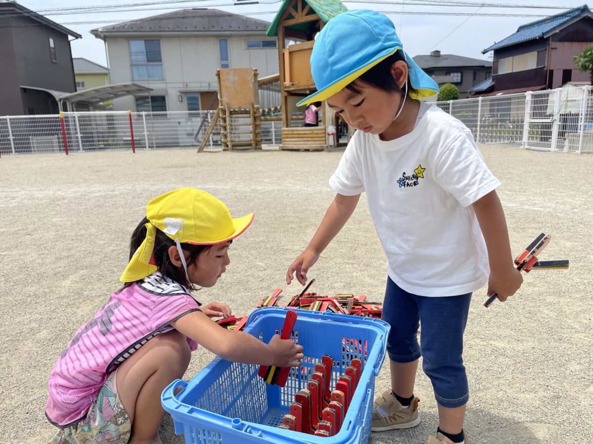「これおかたづけするの?てつだうー!」と鳴子の片づけをしていためろん組さんのお手伝い。 「どうやってしまう?こうやってしまうのであってる?」と確認しながらお手伝いをしていました。