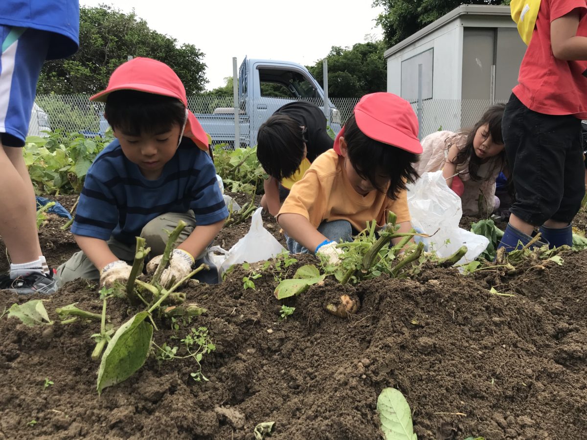 「これおっきいなー!」「ちっちゃいじゃがいももある!」と大きさ比べをしたり「だんごむしでかい!」「こっちにミミズおったでー!と虫探しをしたりする姿がありました。