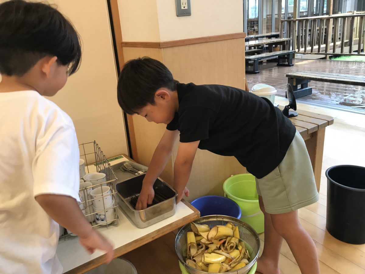 他のチームはお客さんになり「○○ちゃんじょうず!」「こうやってやるんやでー」と見本を見せてくれる姿がありました。