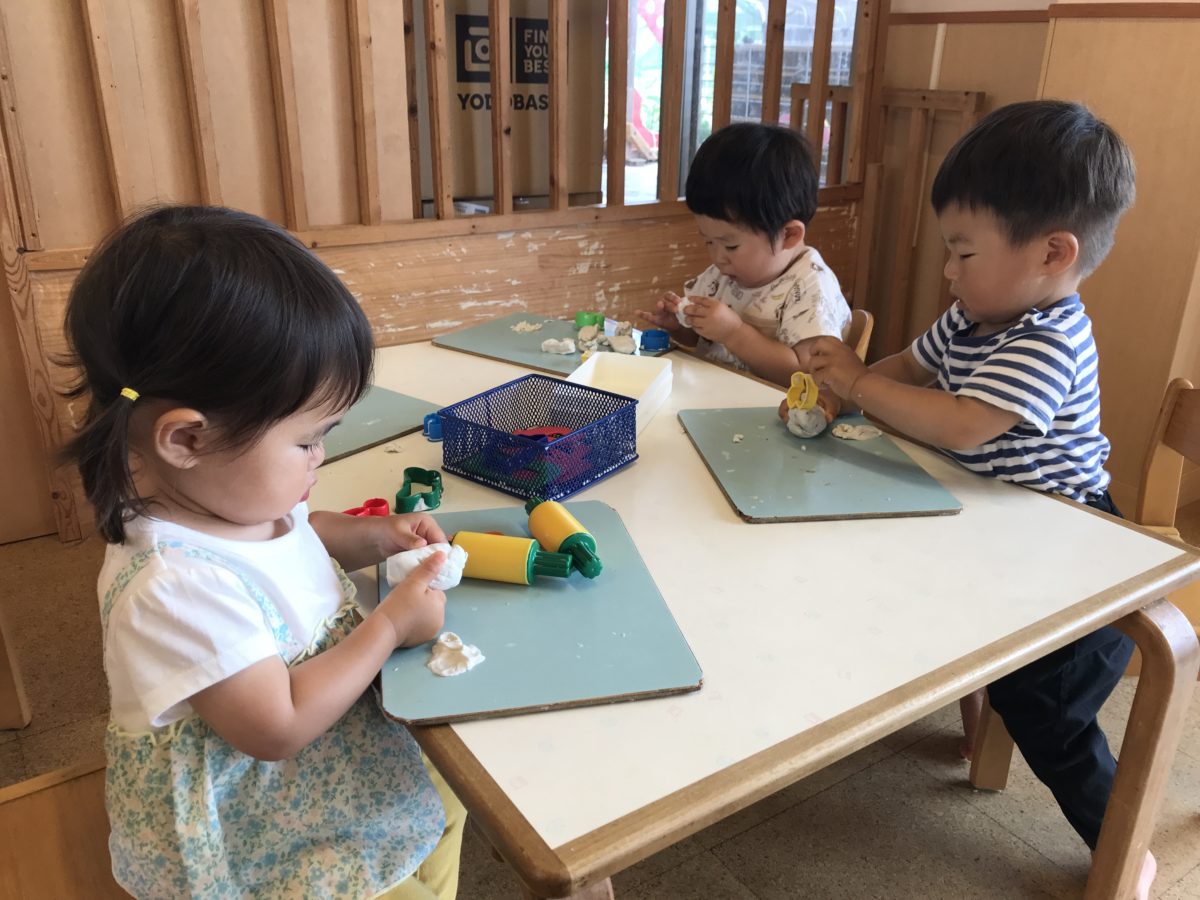こねこね握ったり、ヘラで切ったり伸ばしたり、粘土遊びを楽しみました。