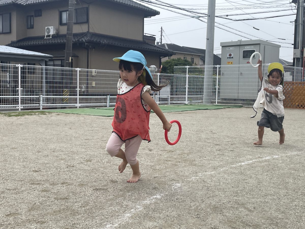 さくらんぼ組さんもバトンを持って頑張って走っています!!