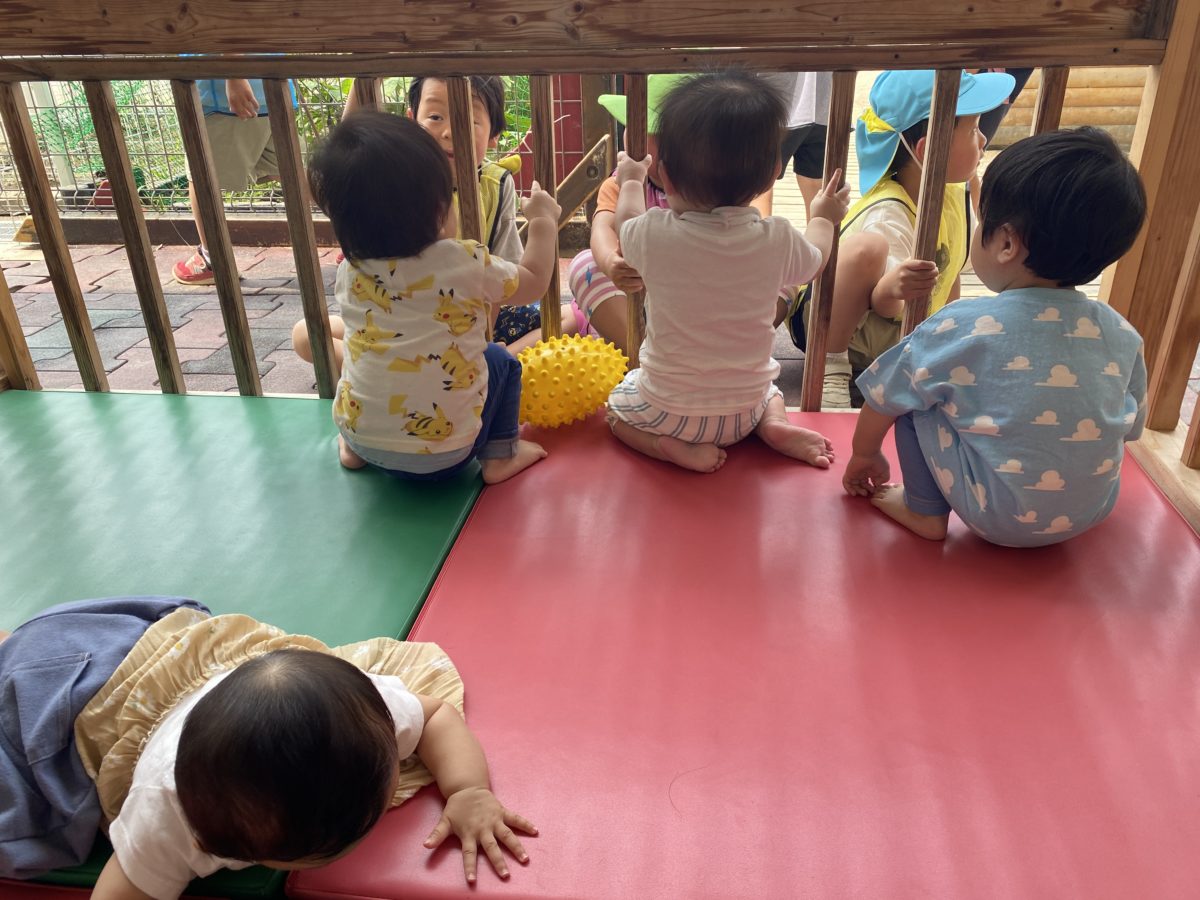 お兄さんたちが近くにくると「タッチ~!」と手を伸ばしている姿がありました。