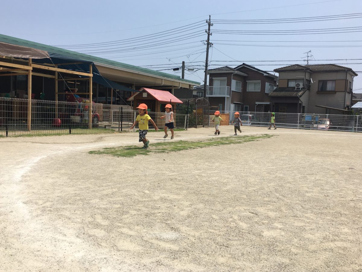 よーいどん!大きいお兄さんお姉さんの姿を真似して元気いっぱい走っています!