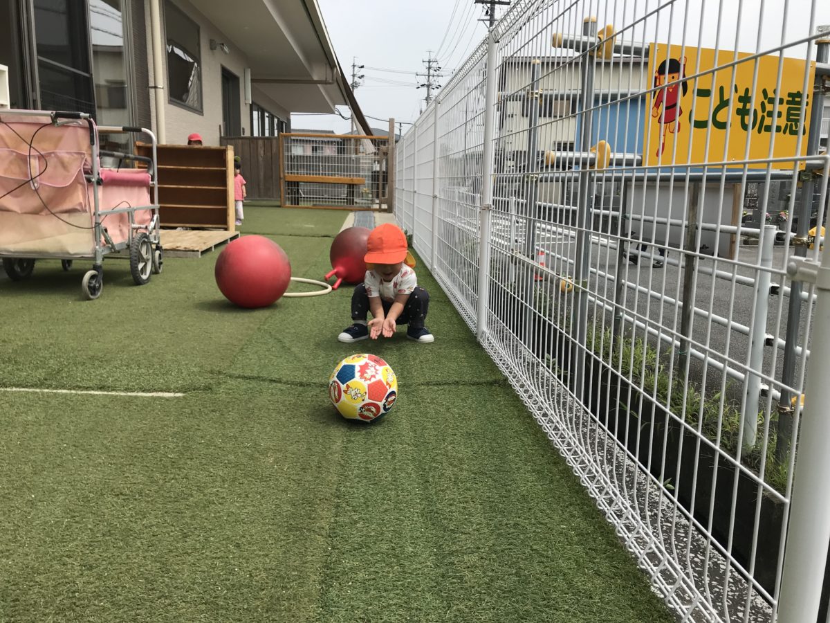 ボールを蹴ったり、手で転がしたりしながらお友だちと遊ぶ様子が見られました。