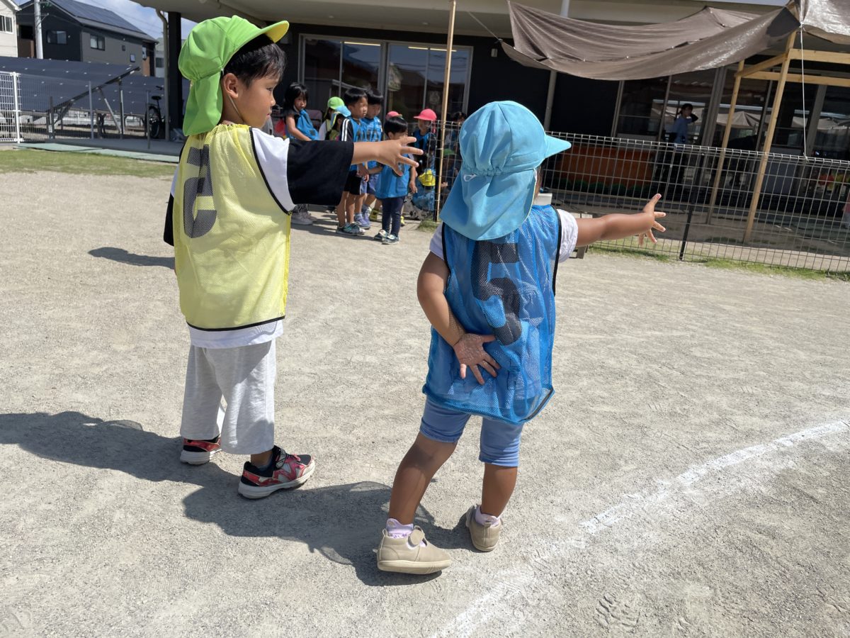 リレー対決!! さくらんぼ組のお友だちもバトンをもらう前の待っているときに腕をしっかり伸ばして待っているポーズがかっこよくなりました♪