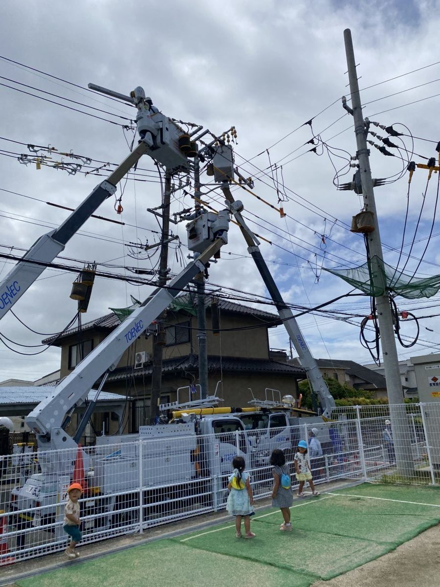 大規模な工事の様子に夢中な子どもたち。がんばって!!と応援しながらじっくり観察していました。