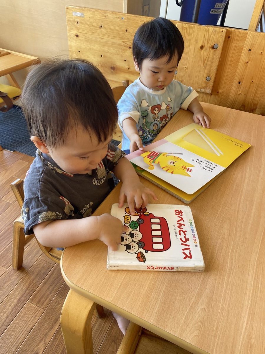 お部屋で積み木遊びをしていると、積み木に穴が開いていることに気が付き、同じ形の積み木を上から「ストン!」とはめている姿がありました。ハマる感覚が楽しかったのか色んな形の積み木を持ってきて穴にハマると「できた!」と言って喜ぶ姿が見れました。
