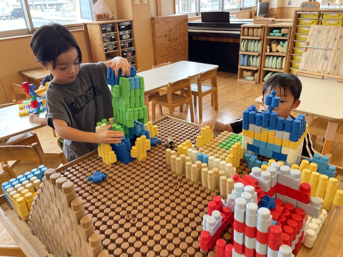 ブロックでお城を建設。小さい子と協力しながら立ててました。