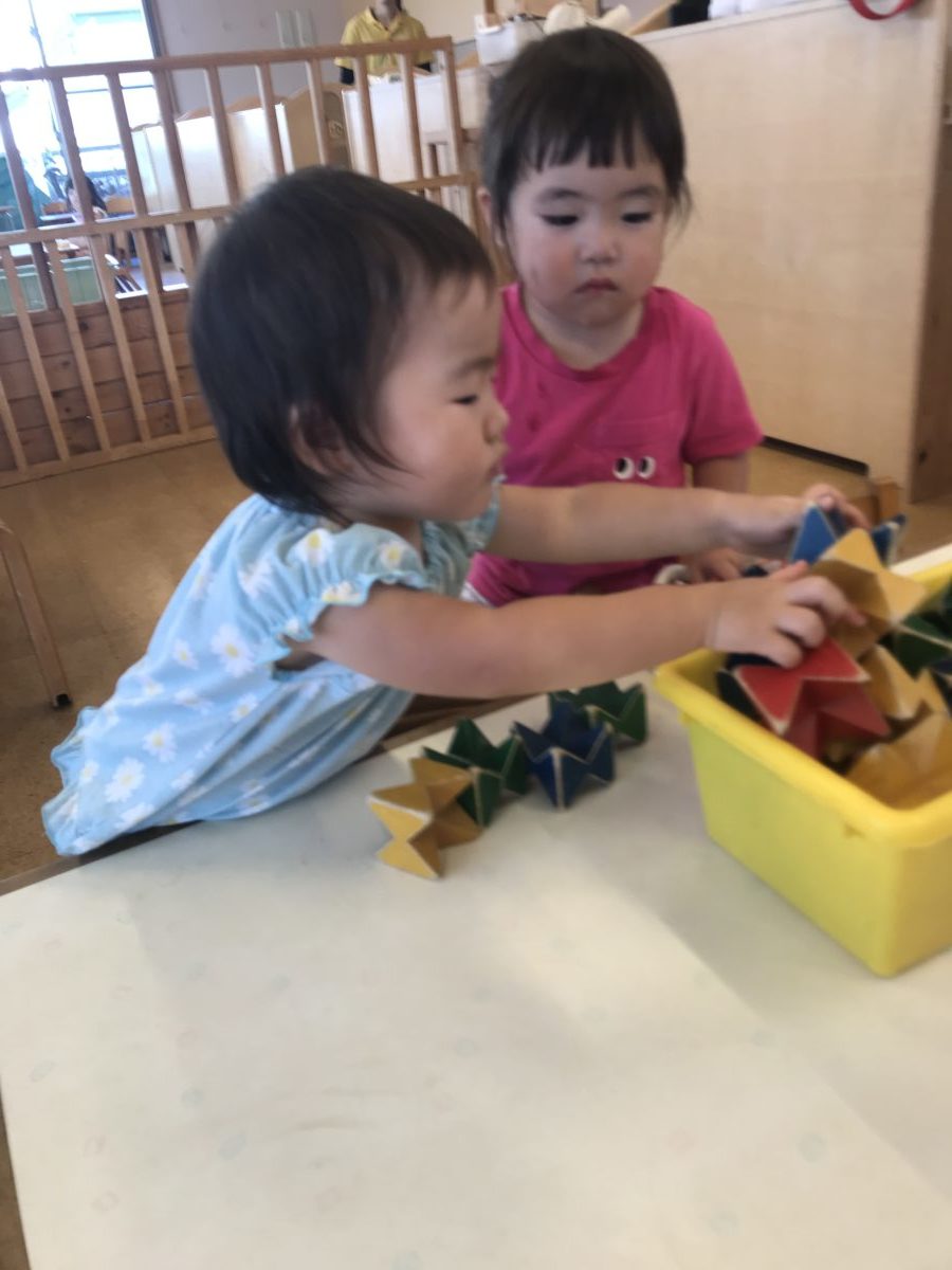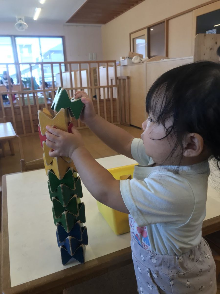 保育士が積み木の片付けをしていると、何も言わず片付けのお手伝いをし始めてくれたいちご組のお友だち。