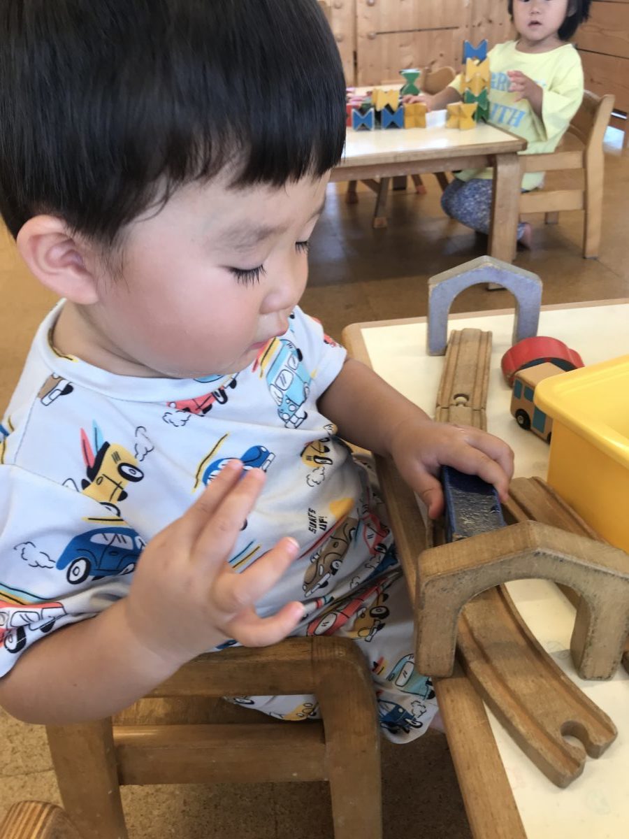 テラスでは『からだダダンダン』や『ピカピカブー』の体操をして楽しんでいると、「ブリンバンバン♪かけて」とリクエストしてくれたりと、身体をたくさん動かして過ごしました。
