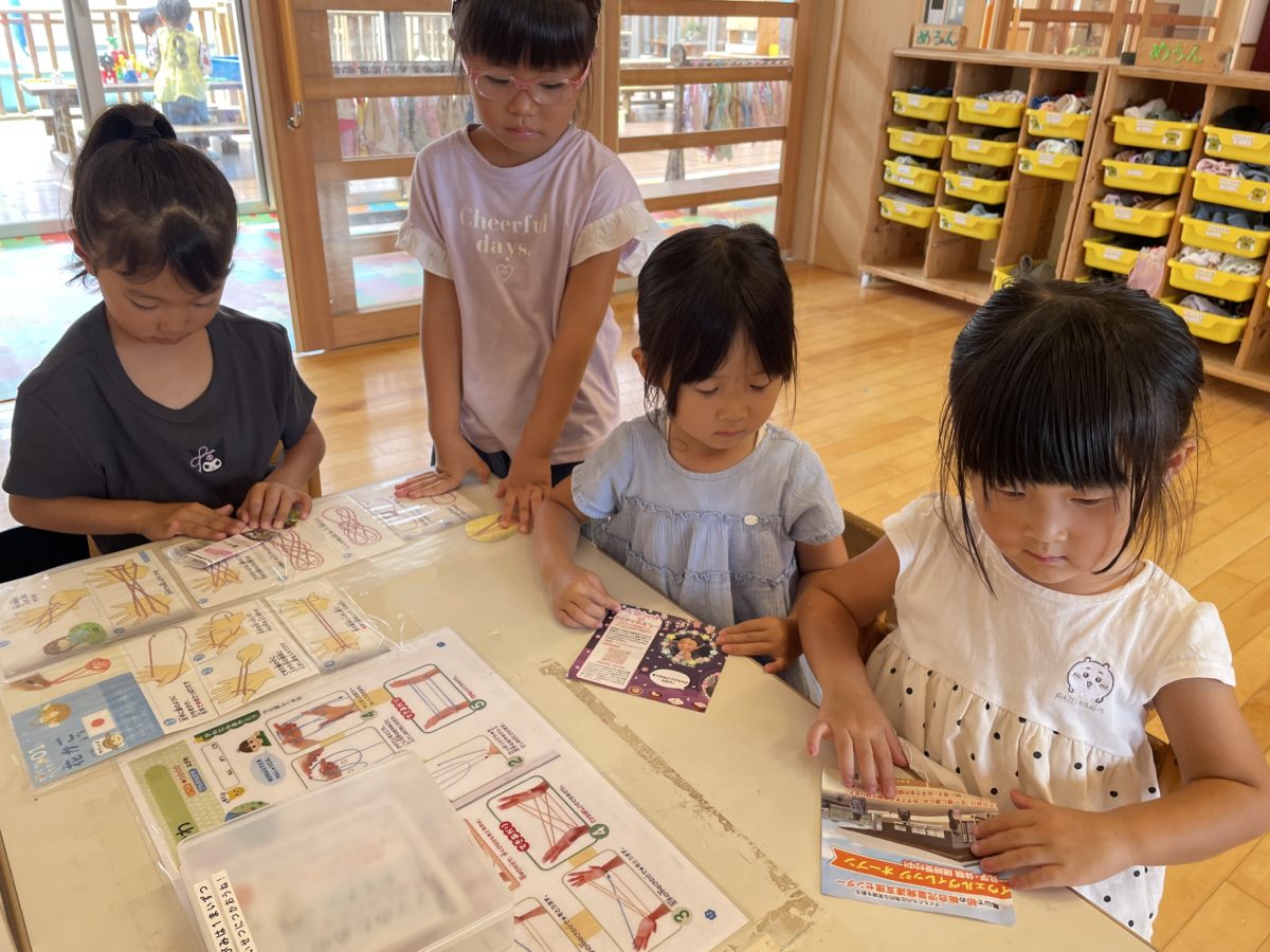 今日もトンボがちらほらと飛んでいる様子があり、「折り紙でトンボ作りたい!」「カブトムシ作るんだ~。」と折り紙でも虫を作ろうと張り切っていました。
