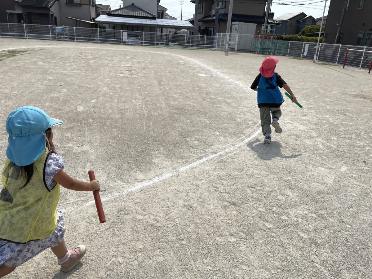 さくらんぼ組さんが前を走るめろん組さんを追いかけています。がんばれー!!