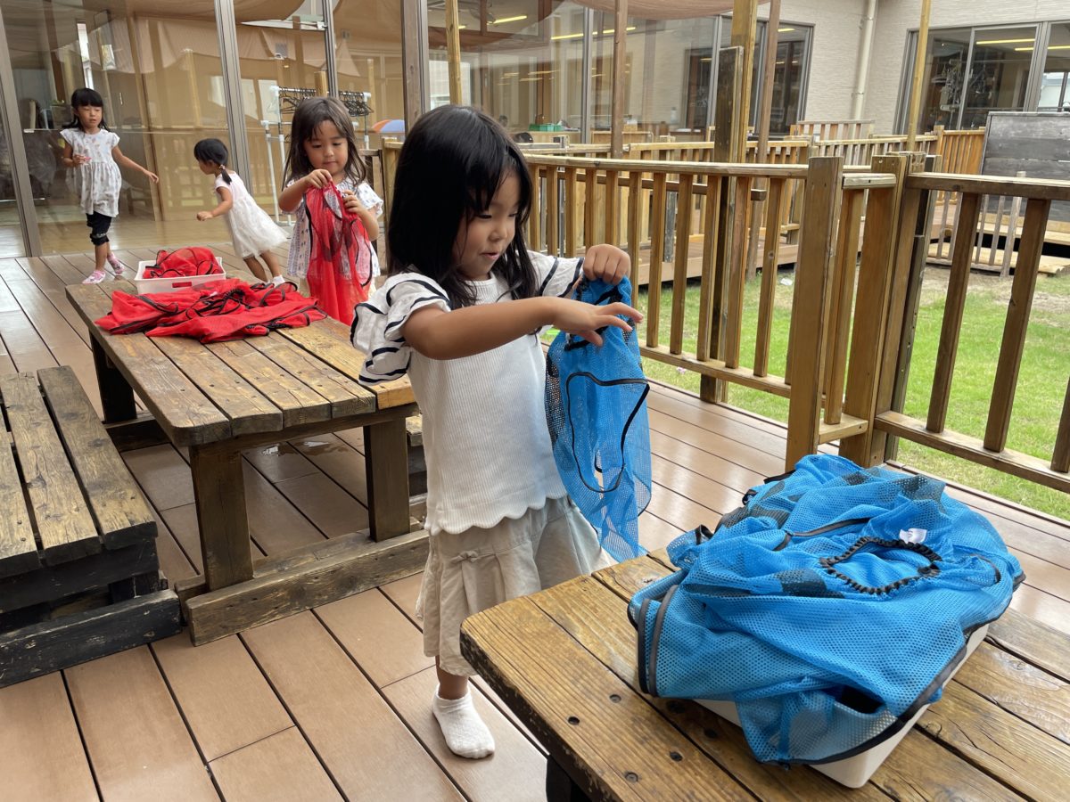 ビブスを畳んでいたさくらんぼ組のお友だち。