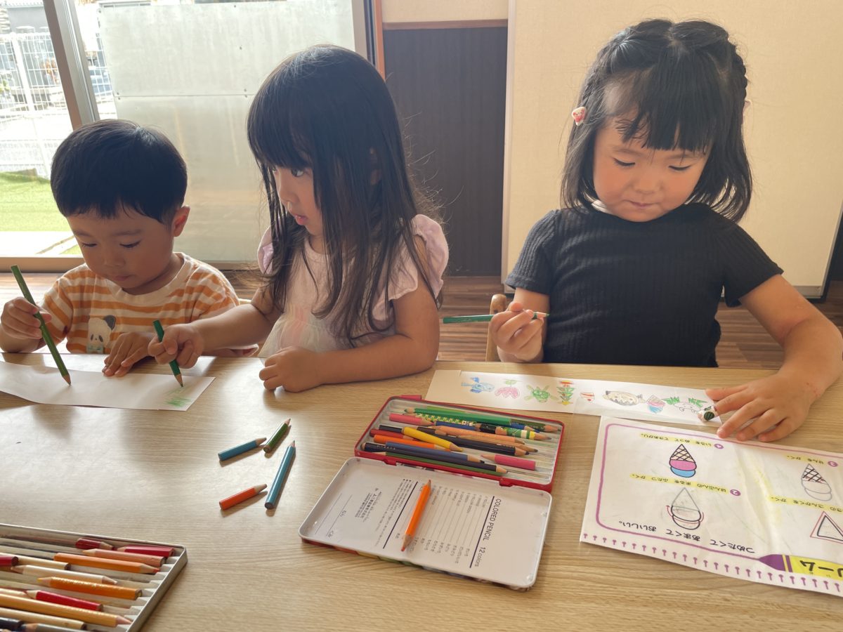 お姉さんが絵を描いていると小さい子たちも同じように絵を描いていました。