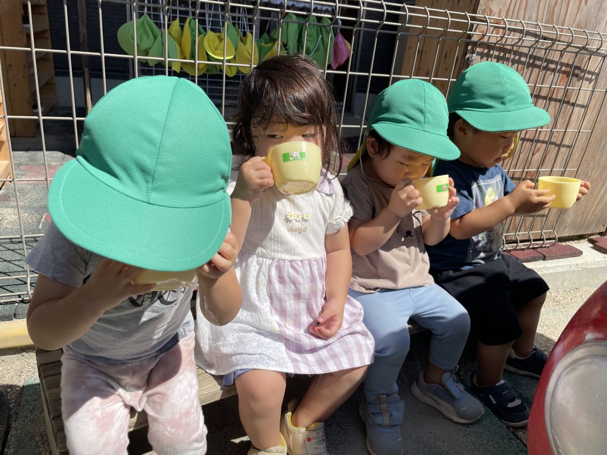 今日も日差しが強いので、水分補給をしっかり取りました。