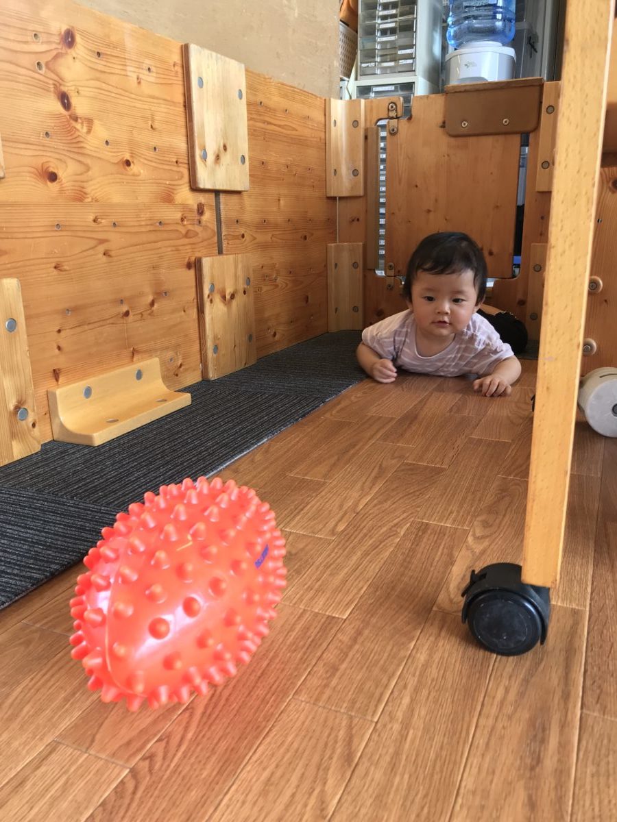 トゲトゲボールまで一生懸命ハイハイしています。