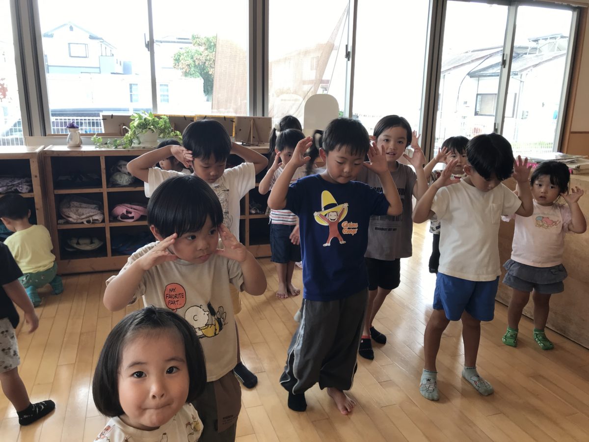 めろん組さんが中心となって新しい曲のダンスに取り組んでいます。途中、鳴子を使いながら楽しそうに踊っていました。