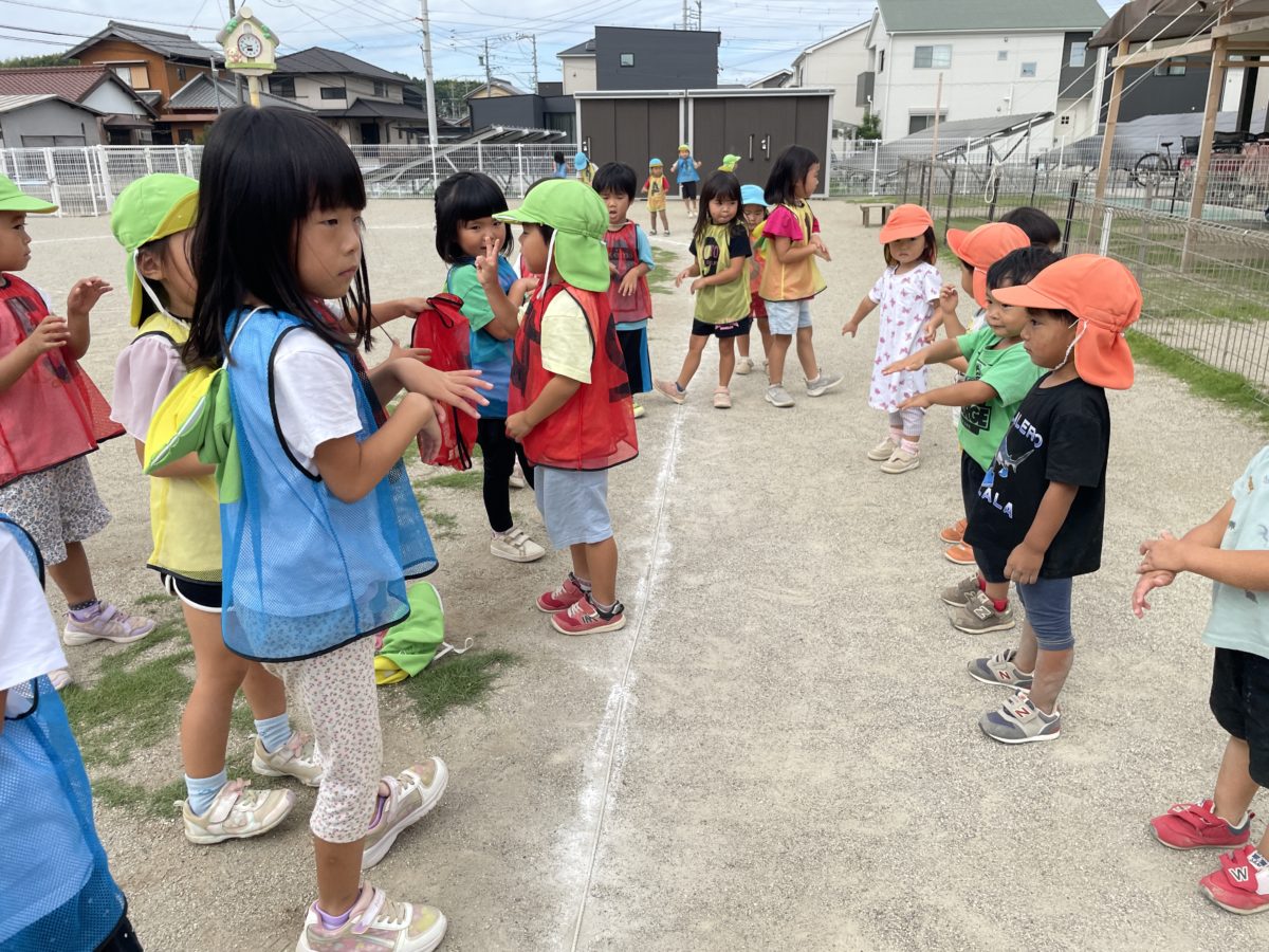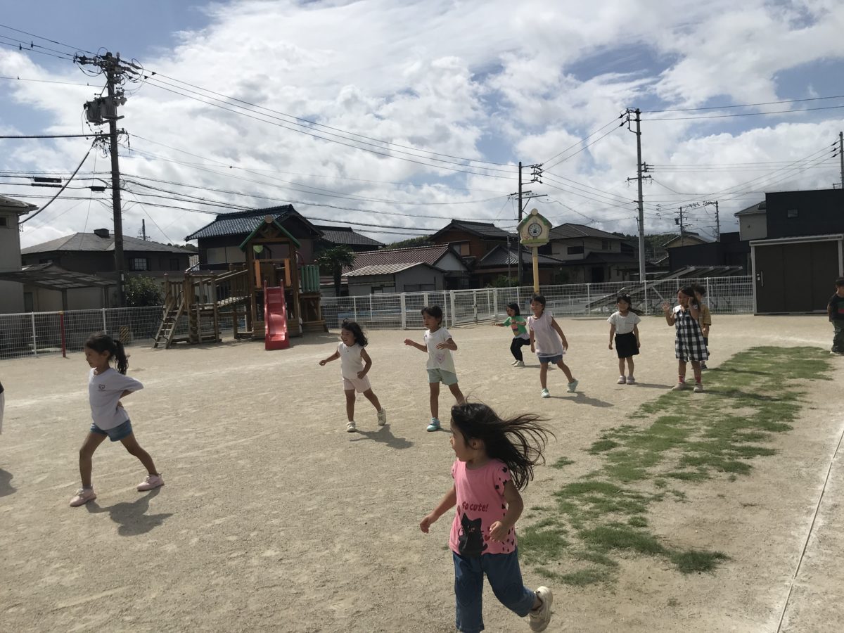 園庭ではリレーやダンスに挑戦!ばなな組のお友だちが前に出てダンスを踊っていると「こうかな?」と真似をしながら楽しくダンスを踊ったり、大きい子と小さい子でペアになって手を繋ぎ、一緒にリレーを走ったりとばなな組さんがリーダーとなり、さくらんぼ・りんご組さんを引っ張っていく頼もしい姿がたくさん見られました。