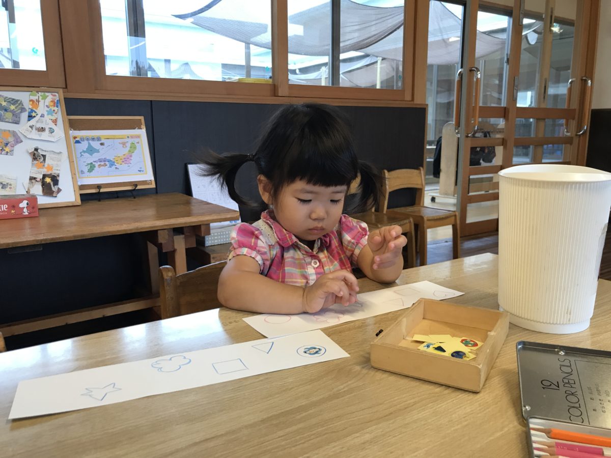 様々な形が描かれている紙にシールをペタっ!