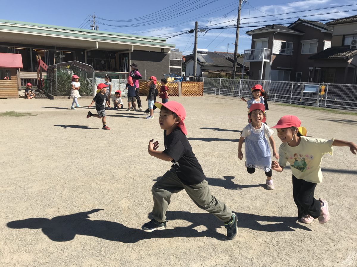 ダンス鬼ごっこに夢中のめろん組さん。逃げる方も追いかける方も必死で走っていました。