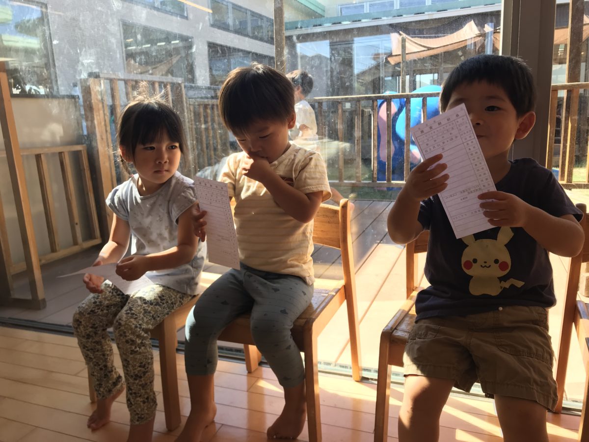 午後は内科検診がありました。りんご組のお友だちも順番が来るまで椅子で待機中。