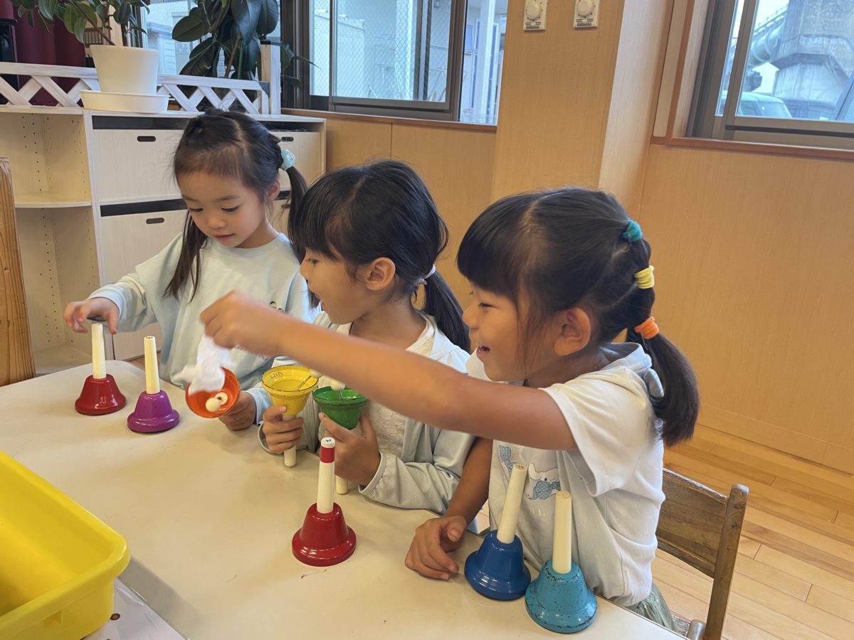 「それが『ド』やで」「つぎは『レ』!」と協力して演奏中・・!