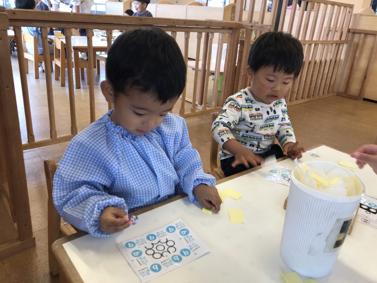 「これきゅう!」「ろくだよ~」シールに描いてある数字が9なのか6なのか夢中になってお話ししていました。