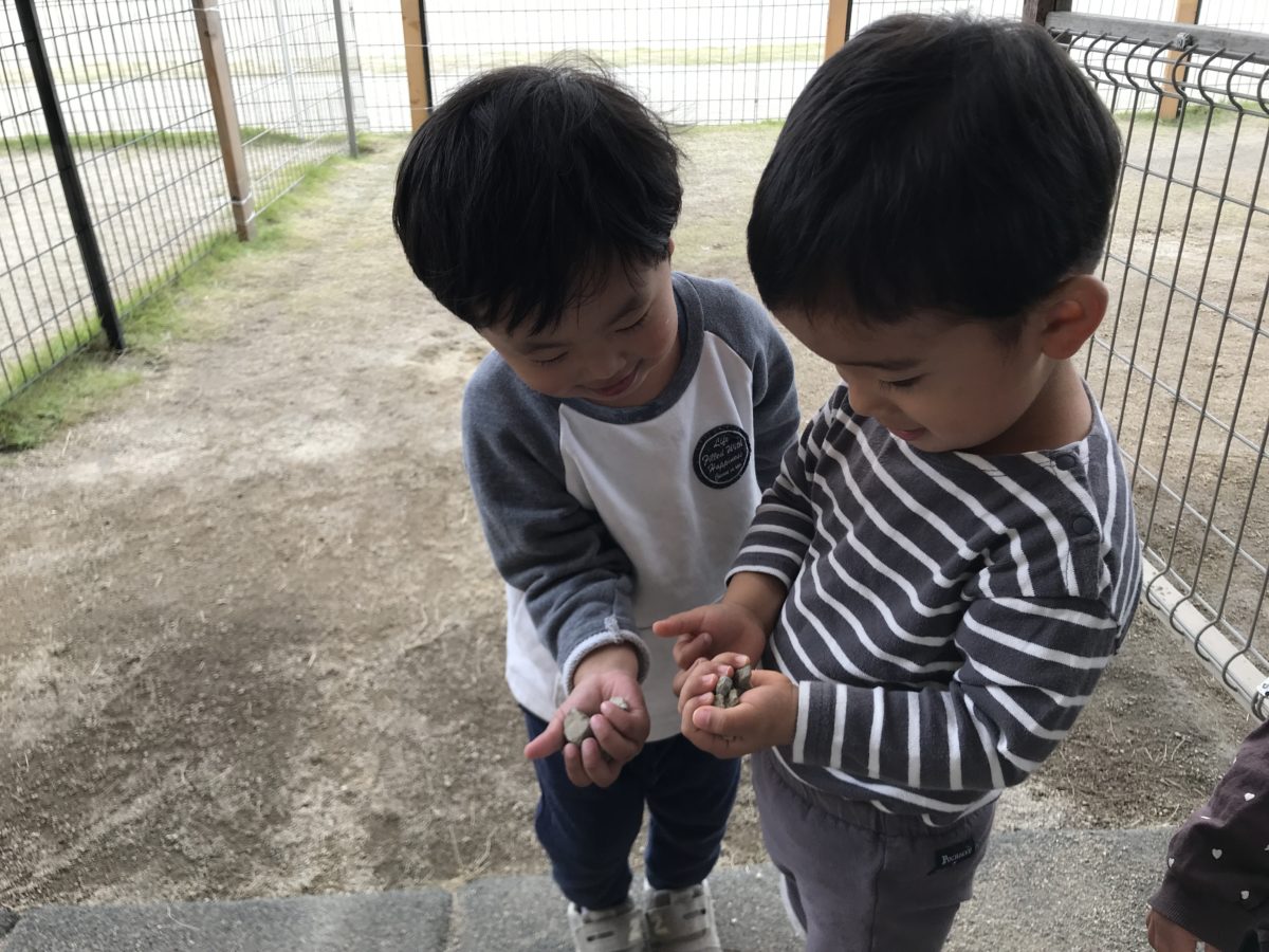 石を集めるのにハマっているりんご組さん!どっちのが多いかな~?