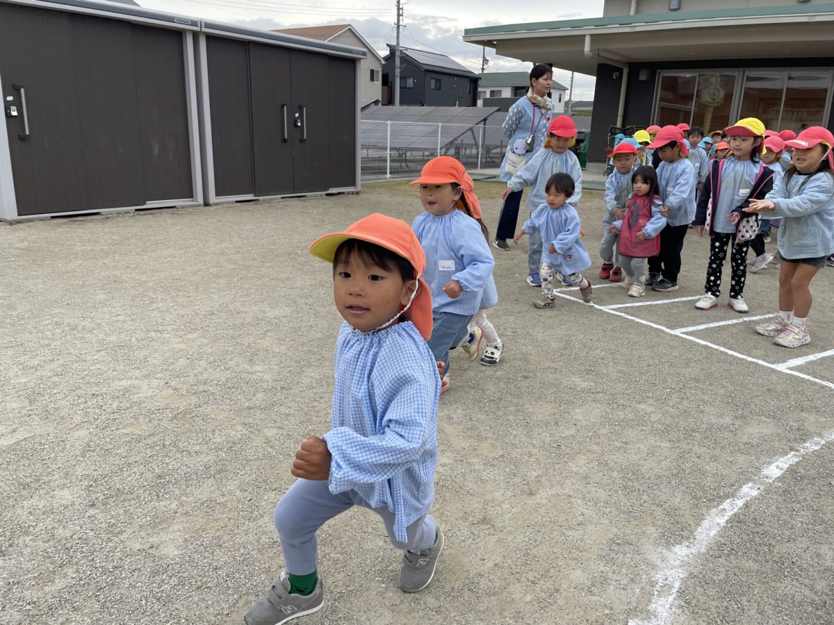 大きい子と同じようにかけっこ走ります。