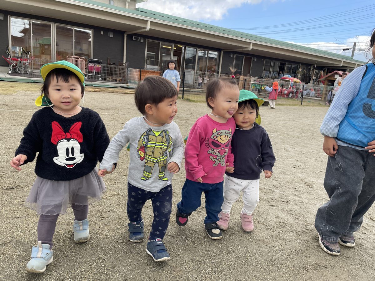 園庭をぐるっと手を繋いでお散歩しました。