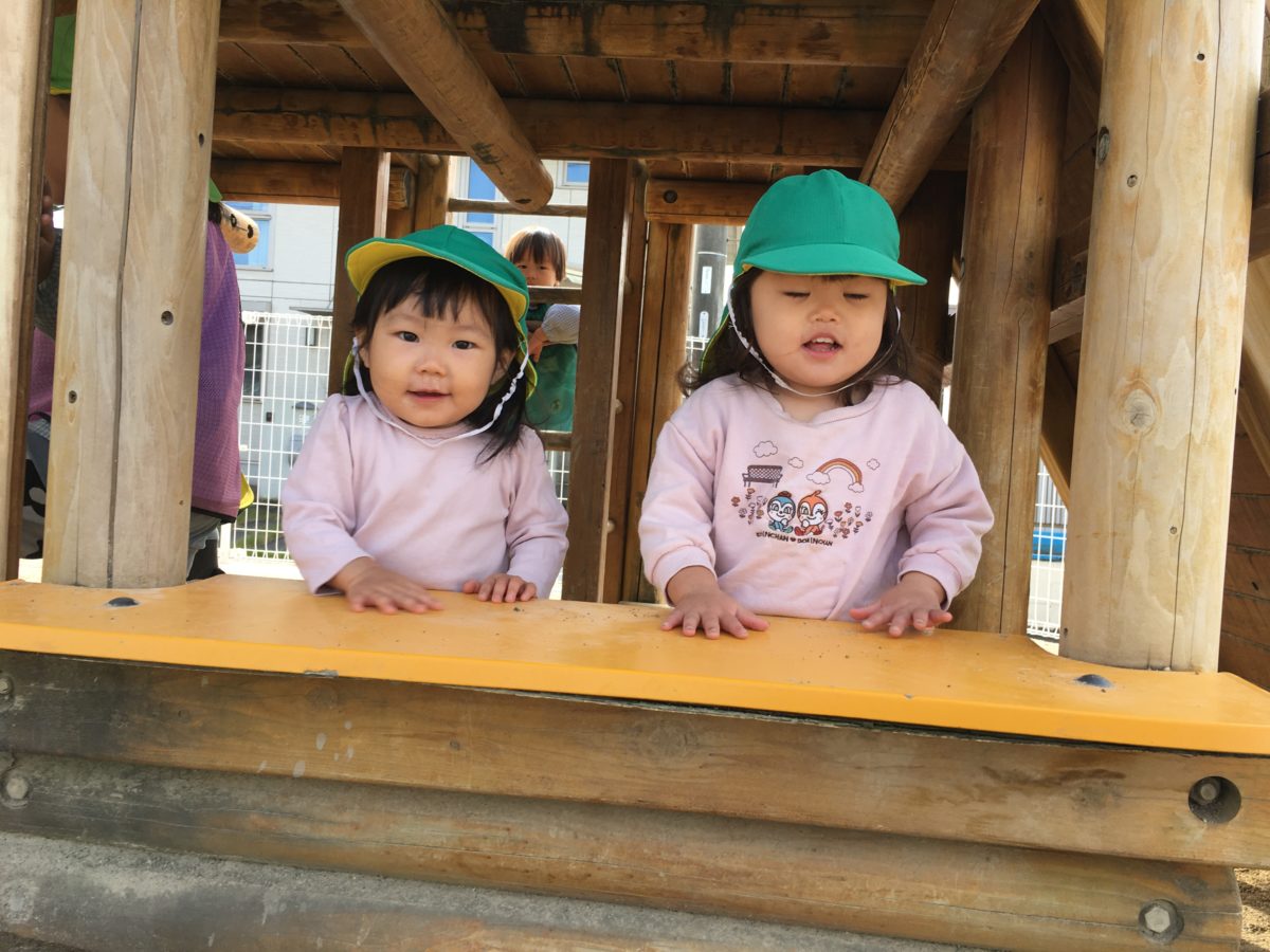 お友だちと目が合いニコニコ。とっても嬉しそうです。
