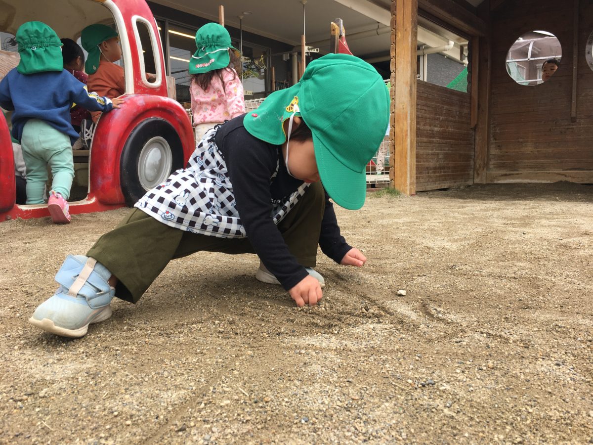 「まるできたよ」と虫メガネのような形を作り覗いていました。