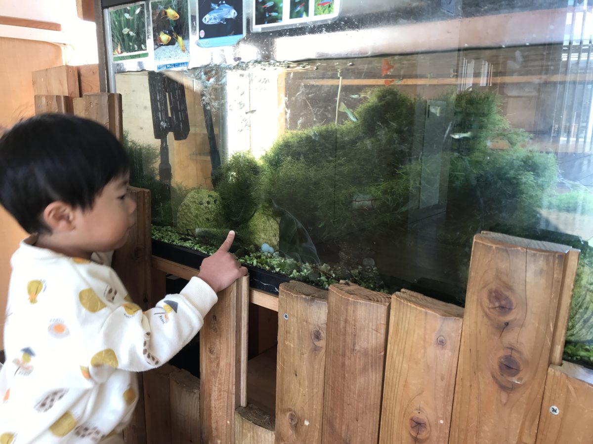 登園してすぐに「魚いっぱいおる!」と興味津々な様子。