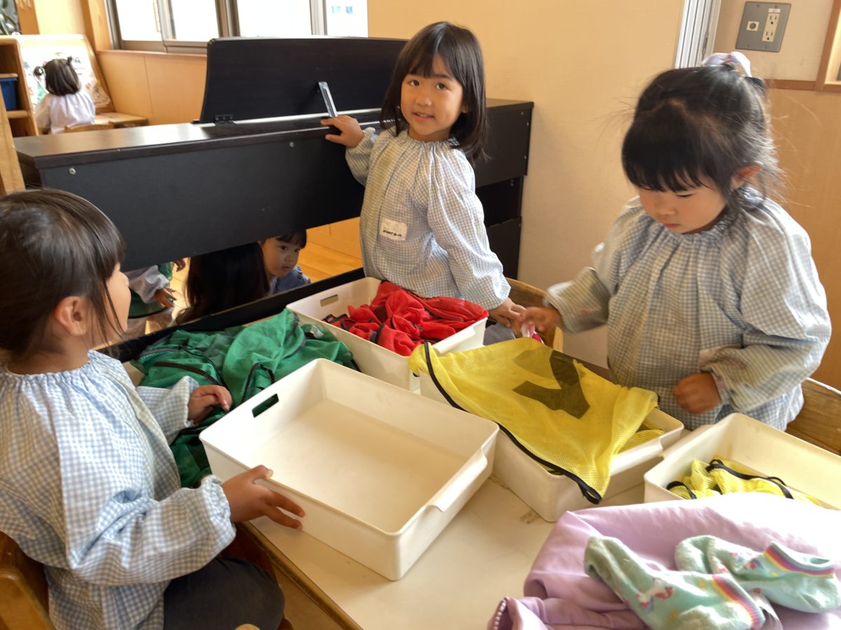 ビブスたたむー!!と大きい子のように上手に畳むようになったさくらんぼ組さん!!