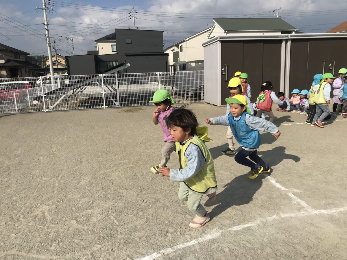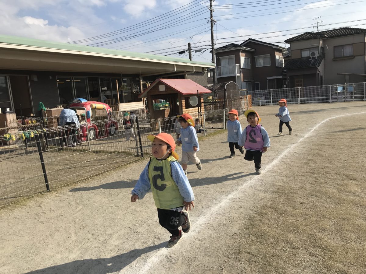 「よーいどん!」とりんご組のお友だちも全力で走っていました。