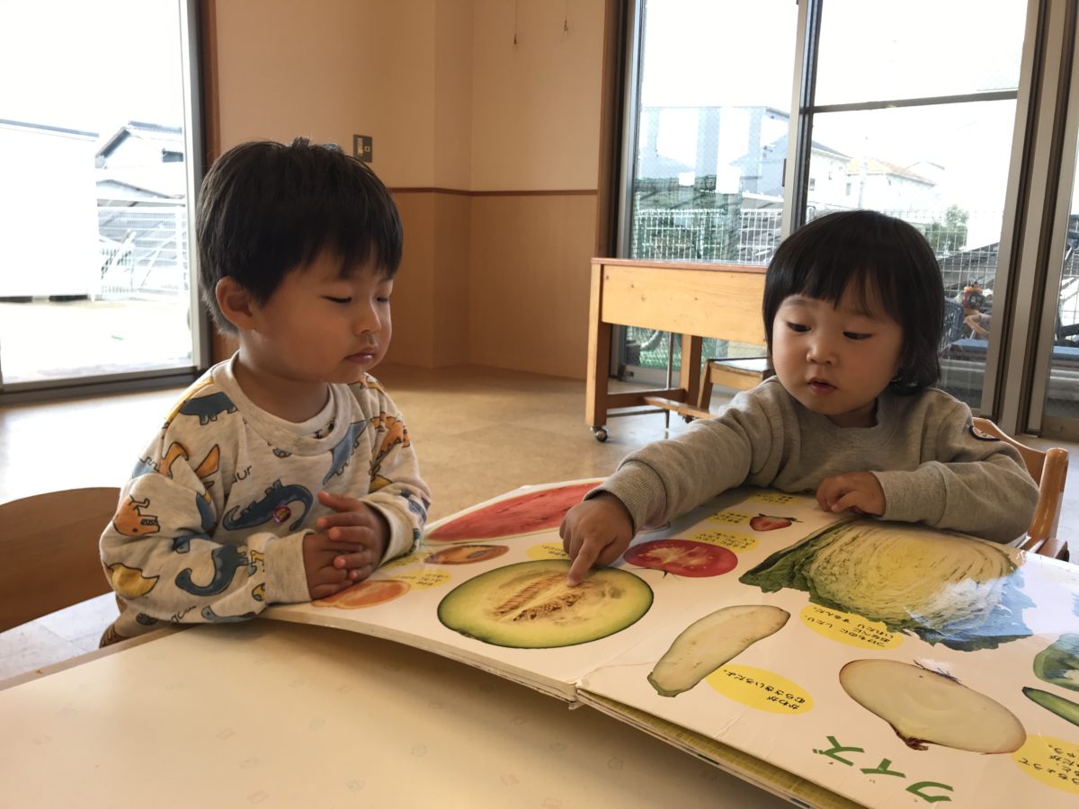 「これ!!」「なんだろうね~」と野菜の写真に興味津々です。