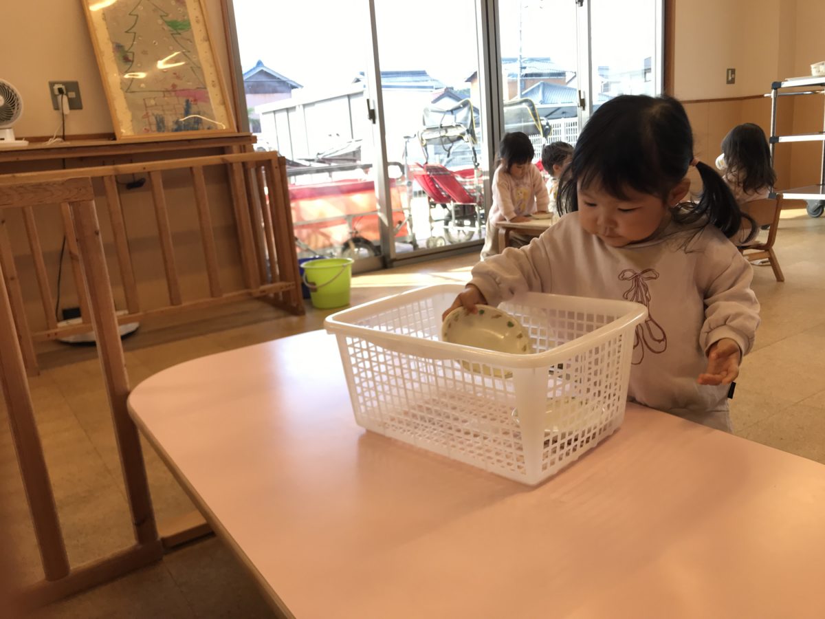 おやつを食べ終えた後は自分でお片付け。