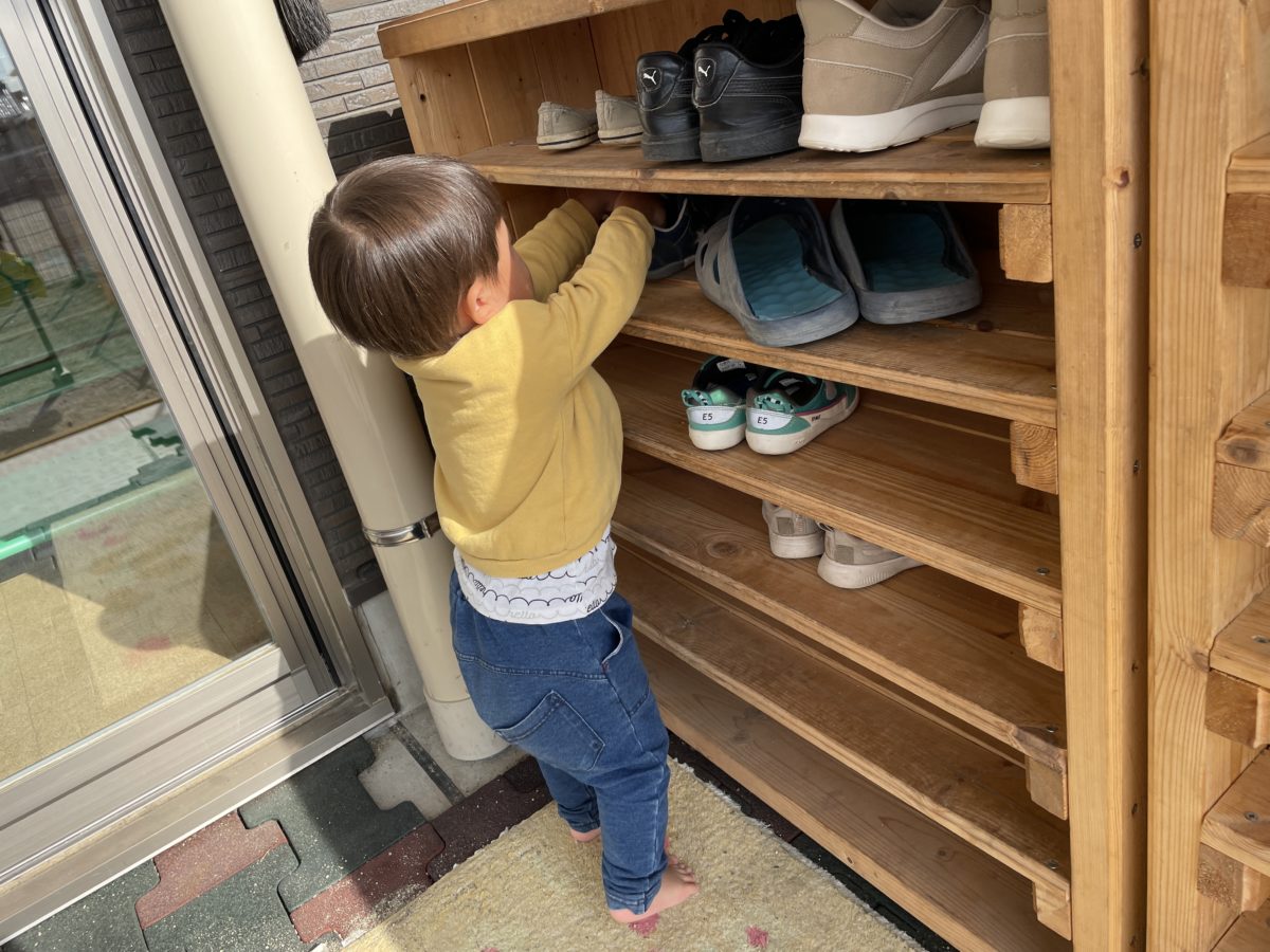 「ないない!」と自分で靴を片付けに行く姿がありました。