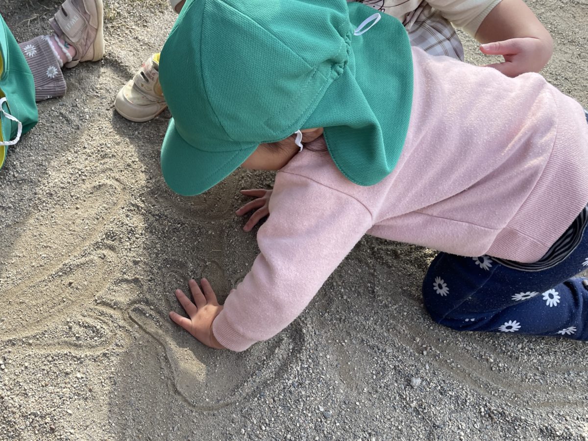 ジロジロジロ。お砂にお絵描きたのしいな!