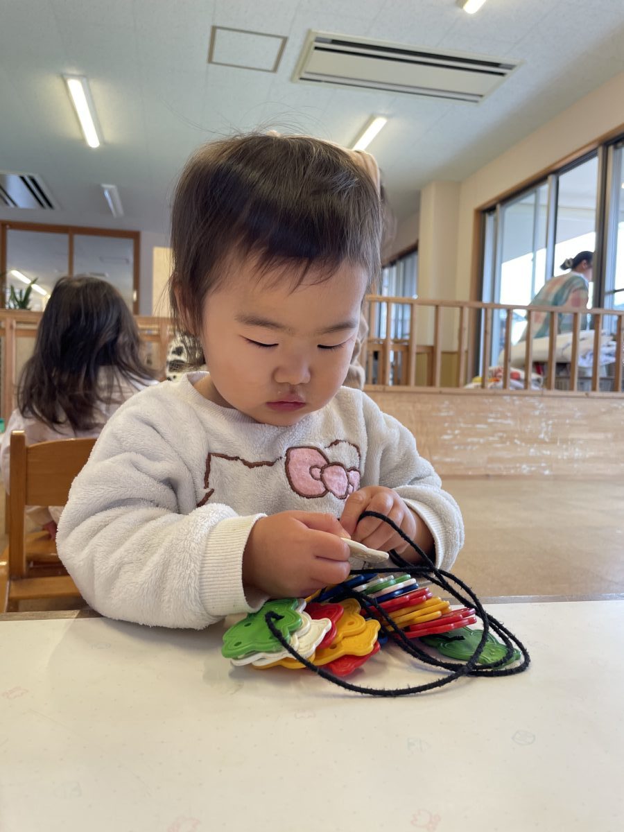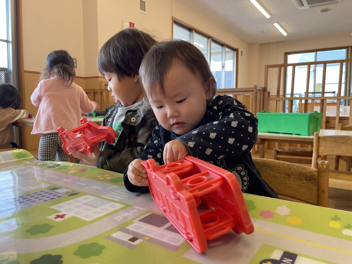 園庭では、回転遊具を楽しむ子どもたち。”バスにのって揺られている”の音楽に合わせて回る遊具にみんな「きゃー!」と言いながら元気いっぱい!「もっかい!」「ごーごー!」と言いながら曲に合わせて歌を歌ったり、自分たちで遊具を回してみたり。寒さにも負けず元気いっぱい遊ぶ子どもたちでした。