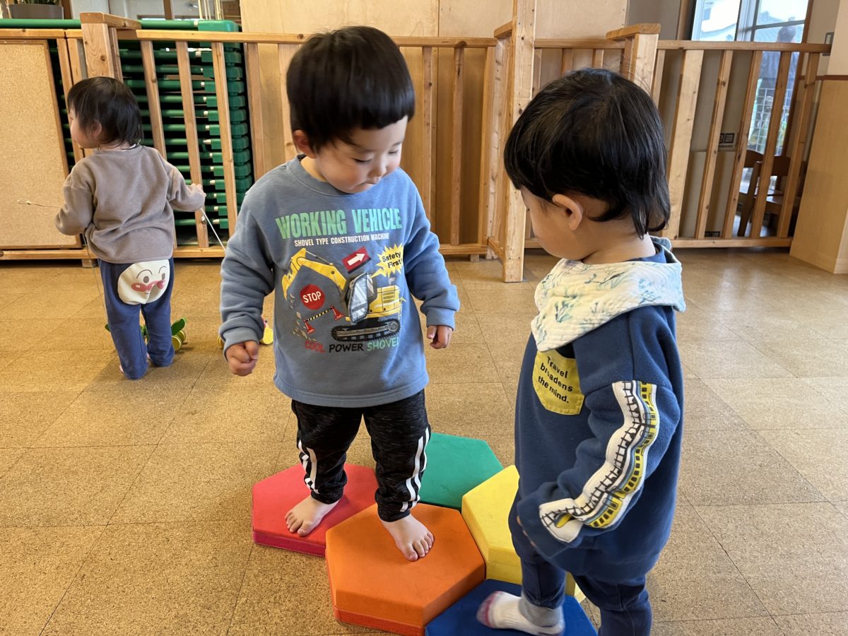 アスレチックマットの上を渡って楽しんでいました。