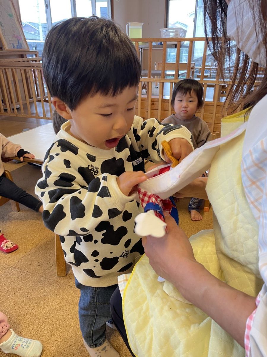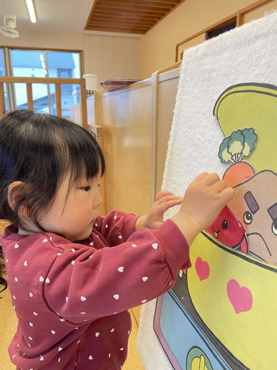 本日のお給食は『カレーライス』ということで子ども達もパネルシアターでのカレーライス作りに挑戦してみました。