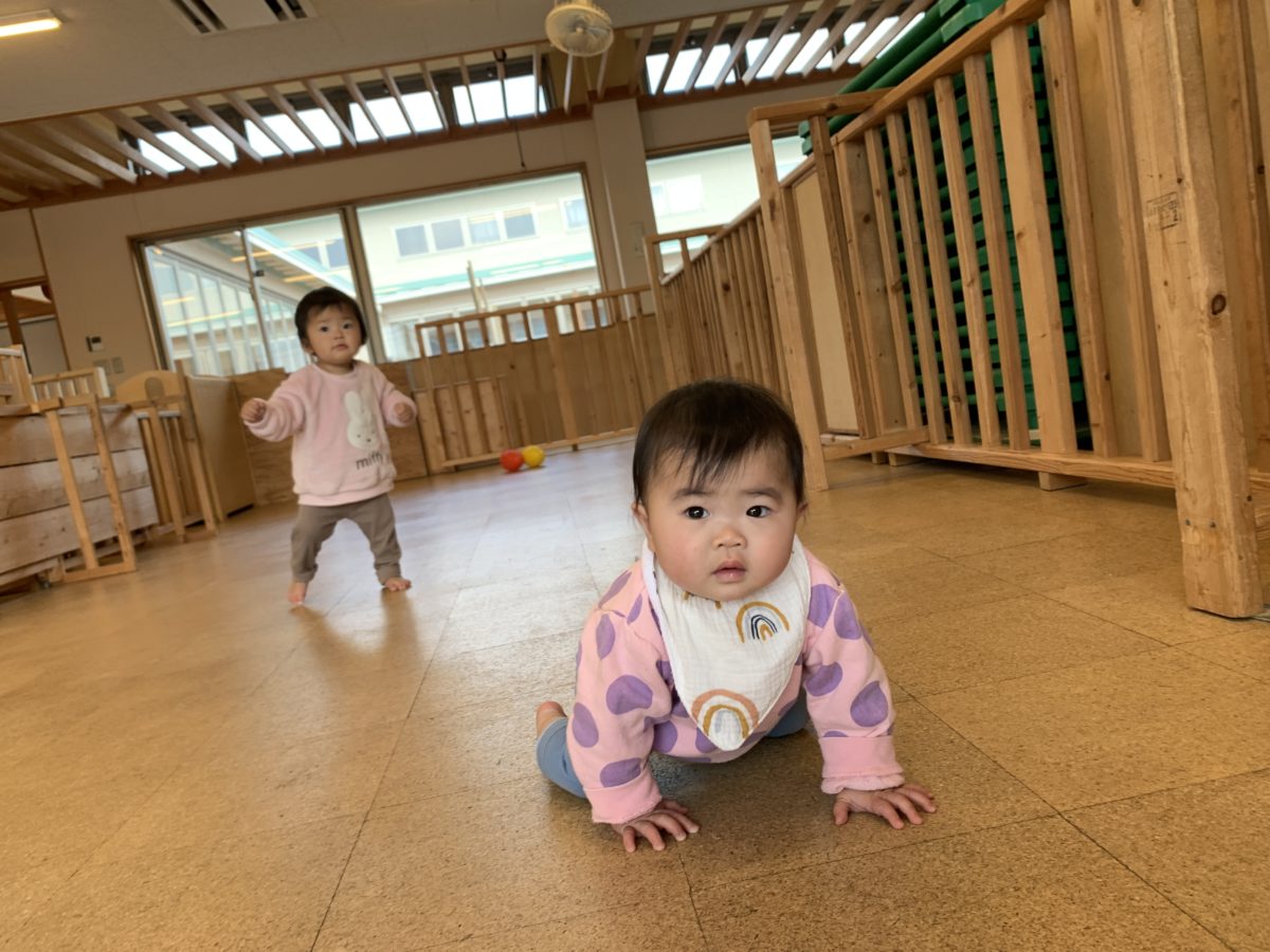 すいかぐみさんは、広い場所でハイハイや、伝い歩き、一人歩きなどたくさん体を動かして楽しんでいましたよ。