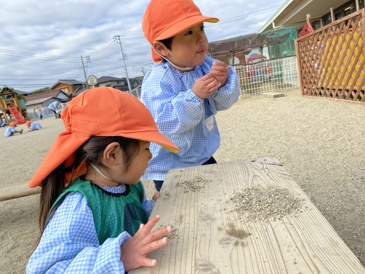 寒さを感じながらも園庭で新しいおにごっこ「れいぞうこおにごっこ」で体を動かしました。「めちゃはしった!!」「からだ、あったまった!!」と元気な声が聞こえていました。