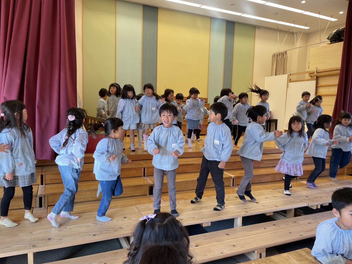 「しってる!」「おどれる!」自分の好きな曲がかかると一目散に舞台の上へ登り踊っていました。