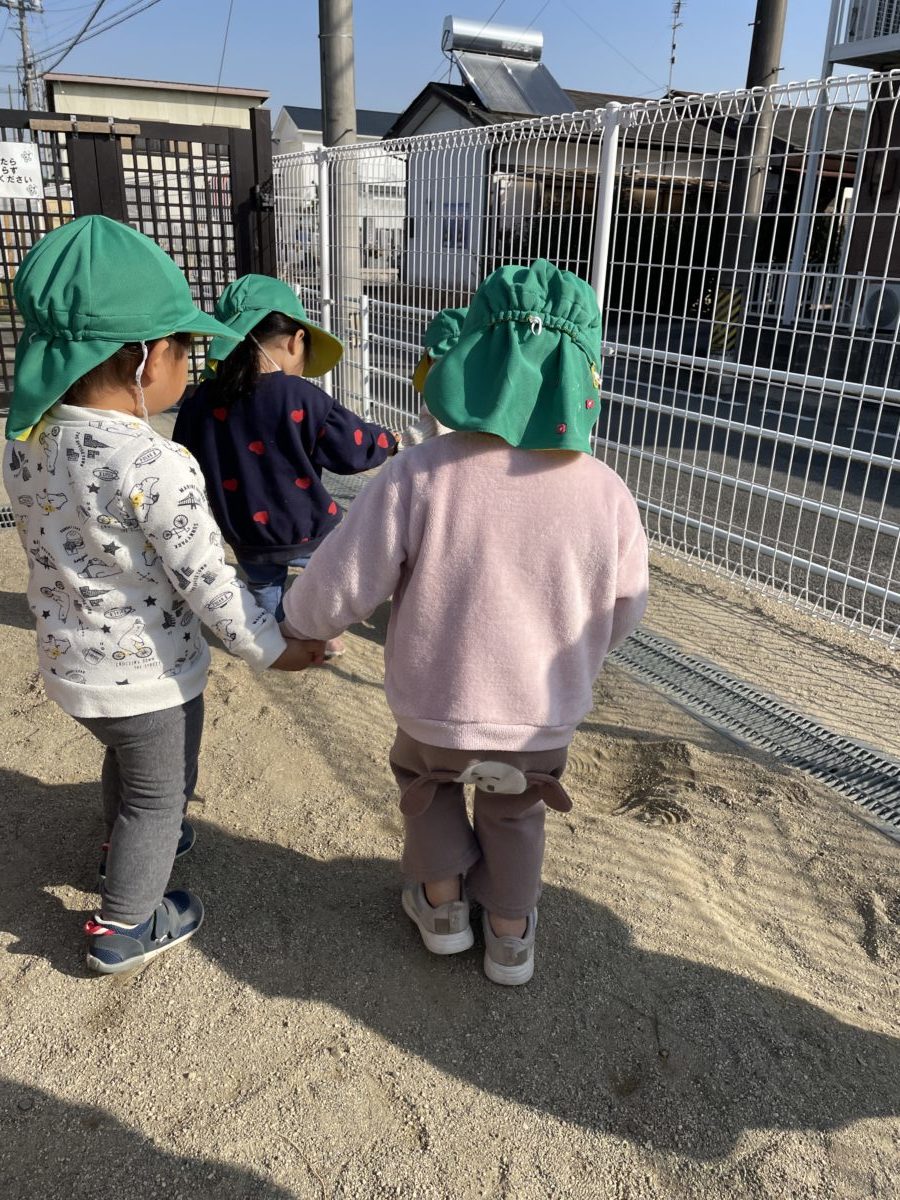 遊びに行くよーと話していると手を繋いで歩く可愛い姿です。