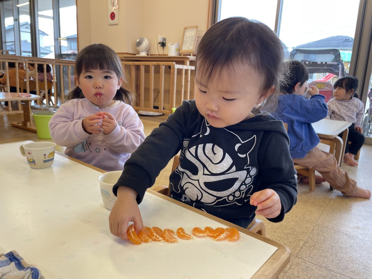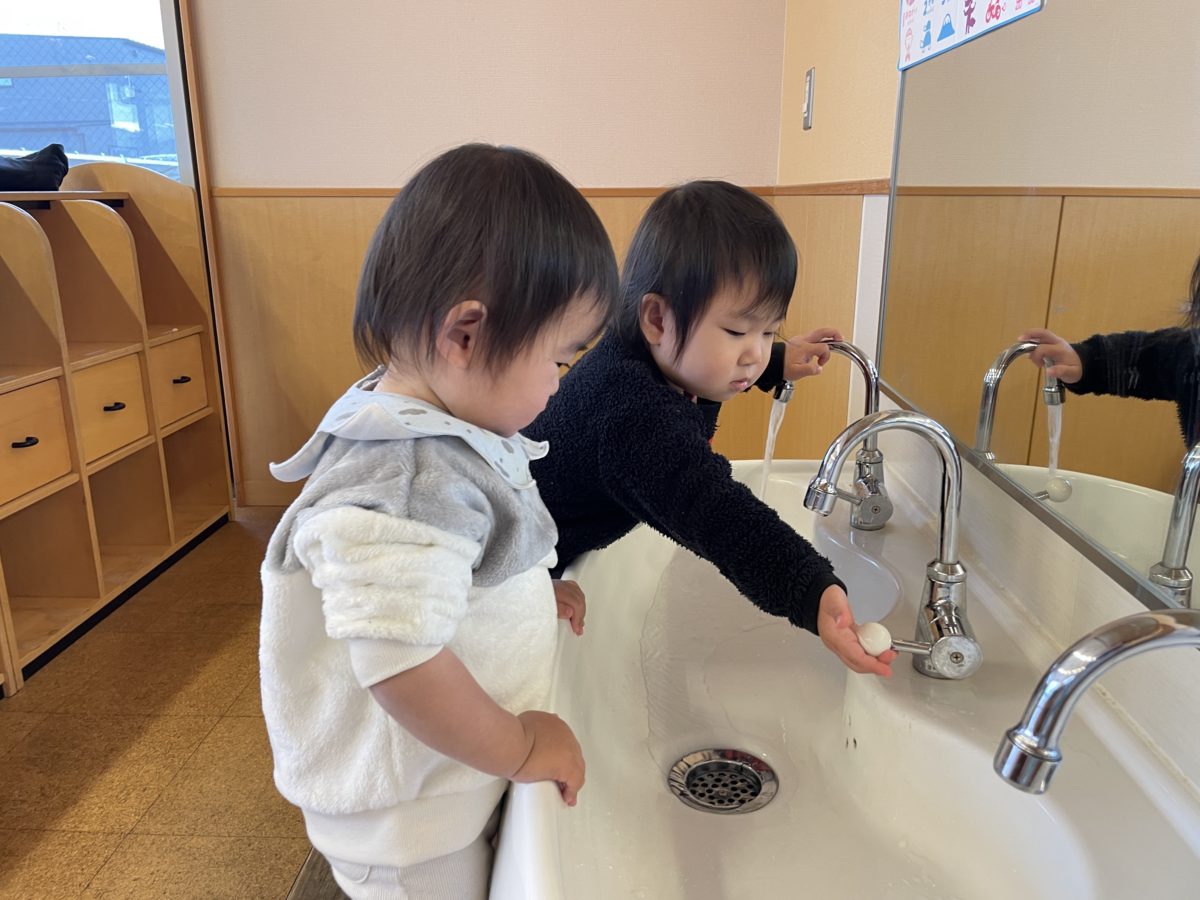 いちご組さんがすいか組さんのお手伝いをしてくれています。