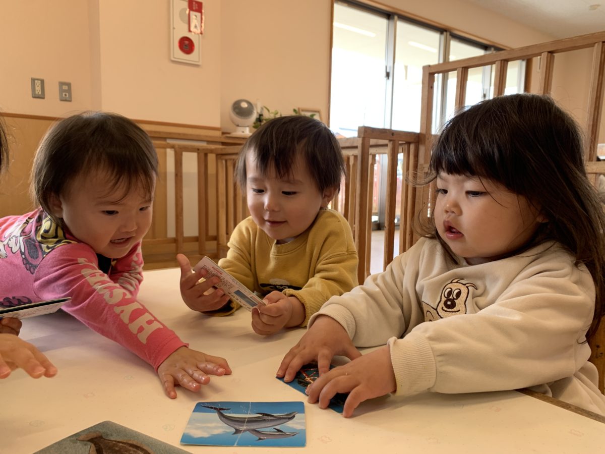 「さかな?」「ちがうよ、いるか!」と海の生き物カードをみながらお話しする声が聞こえてきました。