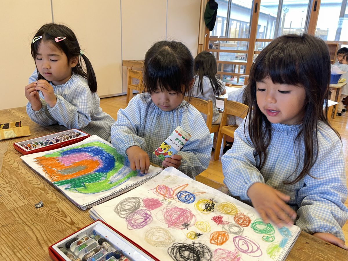 クレヨンでカラフルに色々な物を楽しんでいました。